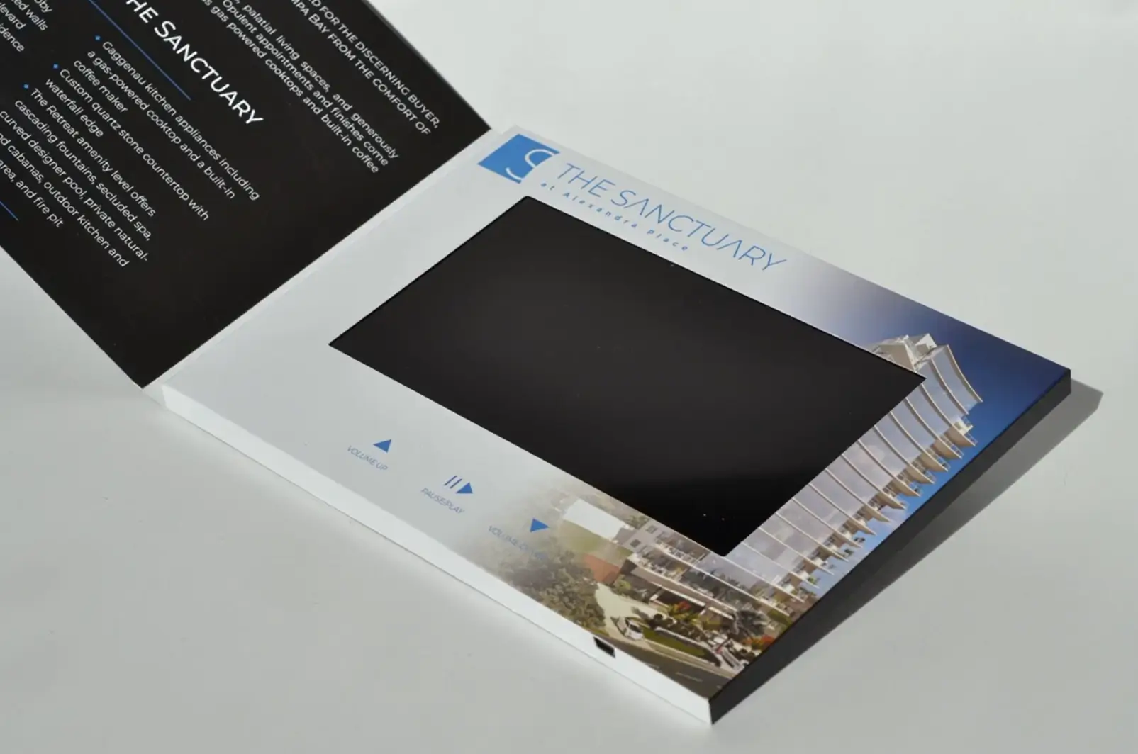 Whether you’re looking for a video brochure, video boxes, LCD business cards, video print, or video mailers, we use the latest HD IPS and LCD screens for maximum quality. Why not schedule a meeting, pick up the phone, or send us an email? We would love to hear from you.